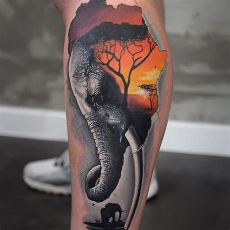 African Elephant Tattoos, Africa sleeve with elephants and zebra by sergio fernández, an artist at seven tattoo in malaga, spain. In africa, elephants are regarded as the wisest chiefs, full of power and wisdom.