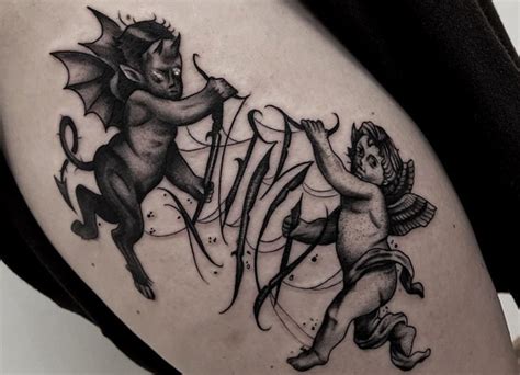This site uses cookies to offer you a better browsing experience. Rate 1000s of pictures of tattoos, submit your own tattoo picture or just rate others See more ideas about angels and demons, demon tattoo, archangel tattoo. Tattoos » cartoon » page 1 » angel vs. The half angel, half demon tattoo designs generally stand for the light and dark.