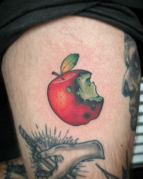 Bad Apple Tattoo, Wear the glowing red, striking designs to finish up your bold style. One of the most popular bad apple tattoos is the design with a snake.
