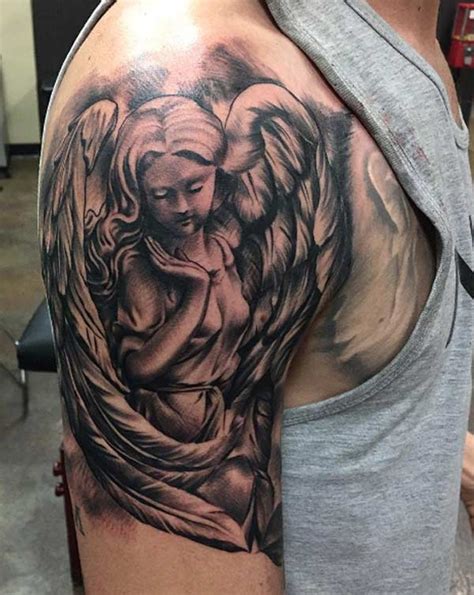 One of the prettiest angel tattoos on back we’ve seen in our life. These winged beings take the form of androgynous humans, often depicted as aesthetically beautiful with wings. Angel tattoo for men on half sleeve. Please help me out by liking if you like it and feel free to share and embed! Cross angel tattoo designs are artistic and.