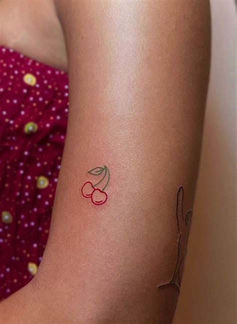 Traditional style cherries tattoo inked on an arm Cherry from www.pinterest.com