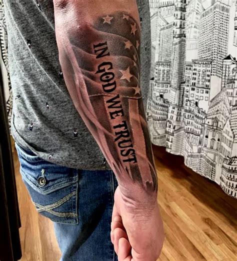 Click here to visit our gallery: In god we trust wood sign, patriotic decor, religious sign, log cabin decor, rustic distressed usa wood sign, country wall art. God is greater than the highs and lows. On the photo, you can see the american flag tattoo done on the forearm and the in god we trust saying done in the middle.
