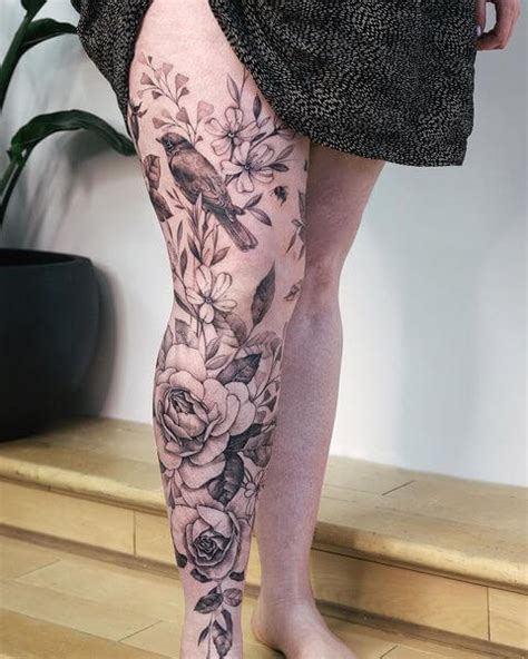 Single, individual flowers or larger groups of flowers that cover your entire leg. Instagram this wolf tattoo with floral detail shows how a small portrait could look good on your back when the sizing and placement is right. 2.14 behind the ear tattoos; 9 best fake tattoo sleeves: Leg is the limb to support body.