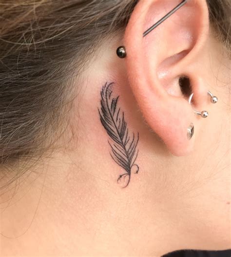Bird feather behind the ear. Most tattoo lovers get small ear tattoos for them. Itβs by far one of the most sensitive areas for a tattoo, which means the pain inflicted is often excruciating. A behind the ear feather tattoo can be worn by anyone who wants to portray unfettered by their environment. A tattoo behind the ear on the.