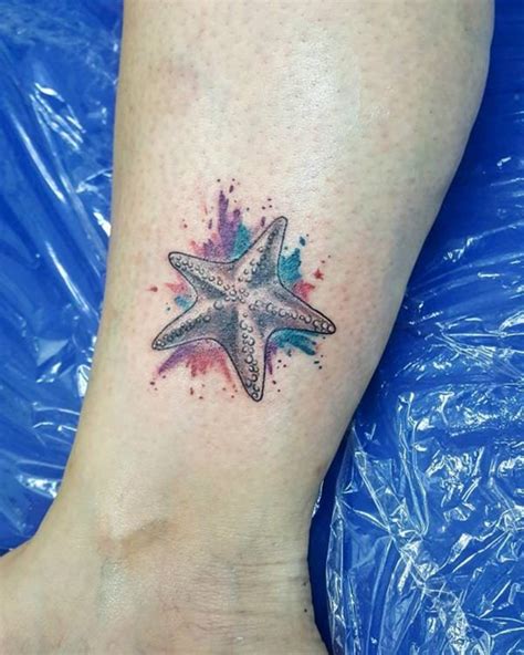 Seashell and starfish tattoo with blue water lines foot tattoo*. Colorful realistic starfish tattoo on lower back. Save my name, email, and website in this browser for the next time i comment. Blue ink starfish tattoo design.