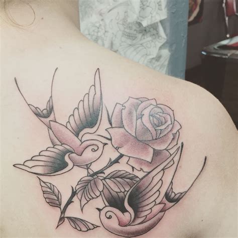 The swallow tattoo is inked on the top of her left shoulder,. Traditional capricorn goat with rose flowers mens arm tattoo. The swallow itself represents wealth, good fortune, and a safe passage. Set of tattoo templates with swallows and roses. Outline black rose and snake tattoo.